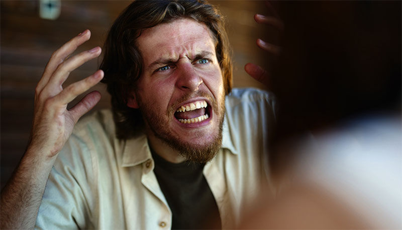 Displeased man feeling frustrated while having a communication problems with his girlfriend.